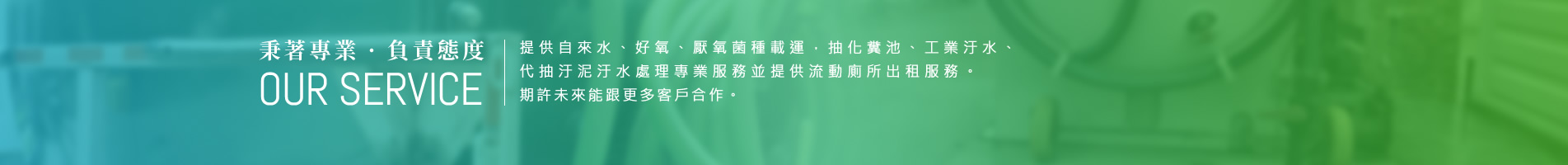全省水車服務、自來水運送、自來水車、載水車、運水車、汙水積水抽取處理、台北自來水運送、桃園自來水運送、新竹自來水運送、台中自來水運送、台南自來水用送、高雄自來水運送、台北載水車、桃園載水車、新竹載水車、台中載水車、台南載水車、高雄載水車、台北運水車、桃園運水車、新竹運水車、台中運水車、台南運水車、高雄運水車、自來水運送槽車、污泥清理處理、汙水道疏通清理、汙水抽水機出租、汙水池清理、工業自來水運送、台北純水運送、台北純水清運、桃園純水運送、台中純水運送、台南純水運送、高雄純水運送、海水清運、海水運送、活性菌種載運、顆粒菌種載運、厭氣菌種載運、汙水菌載運、環境衛生汙染防治服務、環境檢測、生物技術研究發展、能源技術研究發展、建築清潔服務、病媒消滅防治、廢棄物清運處理、工業污水處理、工廠污水處理回收、污泥代處理回收、事業廢溶劑處理、水溝污泥清理疏通、液態物質運送、事業液態廢溶劑處理回收、清理蓄水池、清理污水池、載運活性污泥菌種、載運顆粒污泥、排水暗管堵塞處理清通、流動廁所出租、流動廁所租賃、臺南抽水肥。